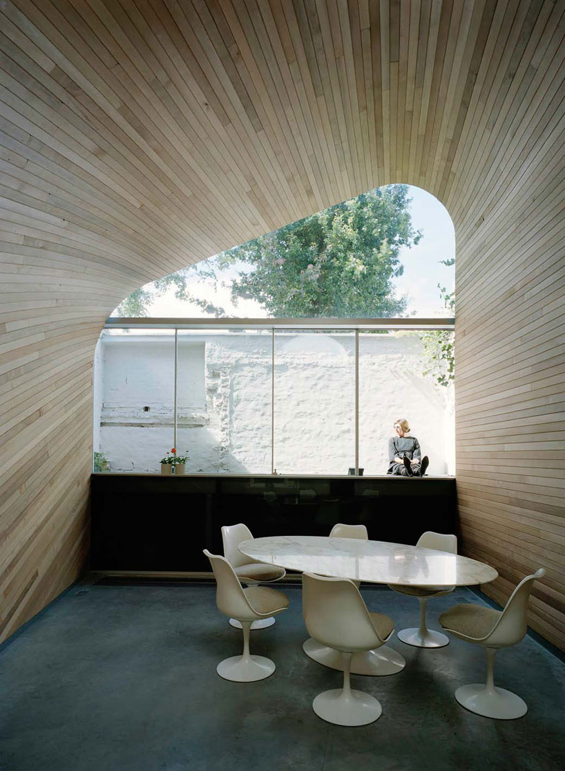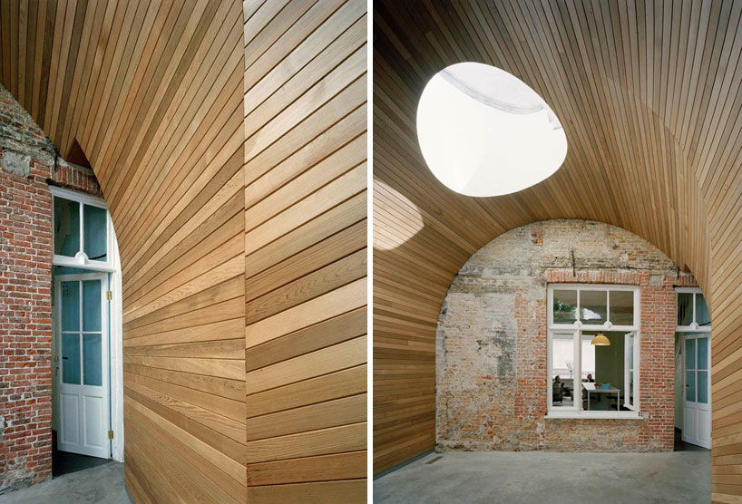 "Brussels based practice, 51N4E, has created 'Vault Room', a row house refurbishment in Bruges, Belgium. Positioned along the Reien in the historical center of the city, the design looks to reinterpret the typical cramped back garden as a spacious continuation of the existing vernacular structure."